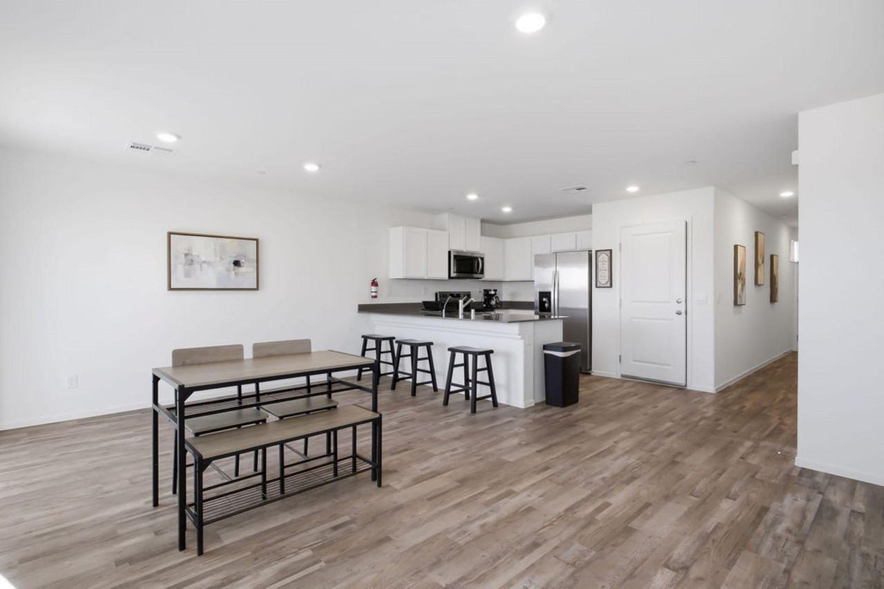 Private furnished room for rent. Your new home awaits! This high-quality North Las Vegas home is waiting for you. This PadSplit is in a gated community, has a porch and dining area, and it’s comfortable and modern. The kitchen is equipped with a fridge/freezer (with ample space), a sink, an oven, a stovetop, and brand-new Whirlpool appliances. Each bedroom is equipped with a workspace, 4K Smart TV, a ceiling fan, and generous closet space. Multiple lighting options allow you to customize the ambiance to suit your work or unwind routine. Located in a neighborhood with easy access to public transportation, this home keeps you close to everything North Las Vegas has to offer while providing a comfortable place to recharge. $301 per week. Room rate includes all utilities, high speed WIFI, free laundry access, and 24/7 Teladoc service. Visit our website (PadSplit), or call us directly to start your application as soon as today! PROPERTY ID: 32468