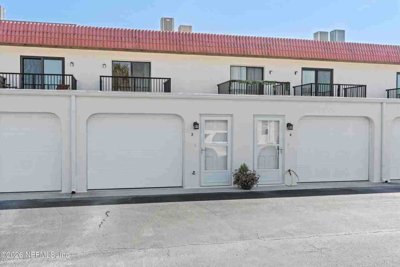 Quiet beachside community, steps from the ocean and beach. Rare opportunity for a 2 story condo at the beach with a garage and three different patios or decks for outdoor living! This 2 bedroom, 2 bath 1200 square ft. 2 story condo has a newly remodeled galley kitchen, granite counters, breakfast bar, pantry, dining area and living room with a tiled patio facing a beautifully landscaped courtyard and swimming pool. Master bedroom has a tiled balcony with ocean view, second bedroom has a Trex deck. Attached 1.5 car garage with plenty of storage, new bathroom vanities, washer dryer. Relax by the pool or walk down to the beach. Great location just steps to the Dondanville Road beach, near restaurants and shops, and just a short drive to the County Pier in St. Augustine Beach or Downtown St. Augustine. This property is offered at $2200.00/month which includes water This is a Non-Smoking Property No Pets