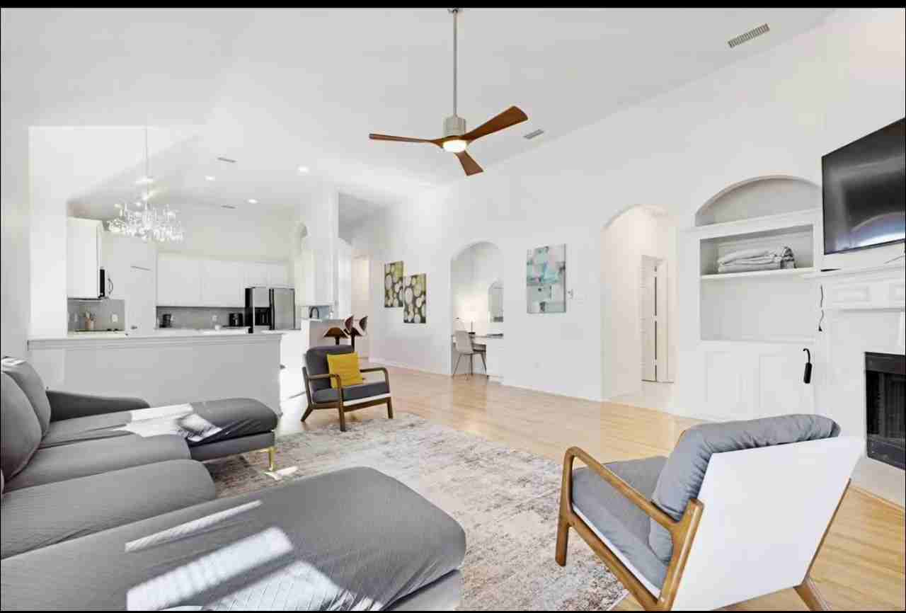 Walk to the Harbor. One Story 3/2 and 2 Car garage with a game room and formal dining and desk with internet. Pets are 1000 non refundable fee. 30 day minimum stay. Dishes, towels, sheets, pots and pans are all provided. Washer dryer & refrigerator. Even back yard area and atrium. Need 30 days or go month to month.