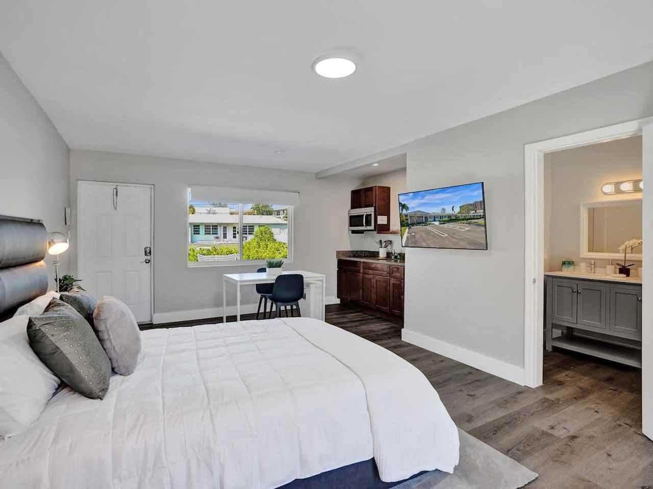 The advertised rate of $2,933/month is the lowest available price, based on a 30 day(s) stay with a move-in date of August 2, 2026. Rates vary depending on the duration of stay, season, and other parameters. For exact pricing and additional pricing components, please visit our website and enter your desired move-in and move-out dates. The rate is applicable when billed upfront; it can be higher if billed in multiple payments. Feel at home in this cozy studio apartment in Pelican Cove, just steps from Pompano Beach on a quiet street. This thoughtfully designed unit features a well-equipped kitchenette with a coffee maker, toaster, microwave, and refrigerator, inviting living spaces, and a private bathroom stocked with fresh towels and basic toiletries. Entertainment is provided by a smart TV with streaming capabilities and complimentary high-speed Wi-Fi. The sleeping area boasts a comfortable bed with premium linens. Enjoy a private back patio for relaxation or dining al fresco, and the front turf area offers communal seating. One guaranteed parking spot on-site is included, accommodating standard-size personal vehicles. If you would like to bring a pet, you must inquire before booking regarding breed limitations and agree to the pet policy. There is a $100 non-refundable fee per pet. Located on a quiet street, this apartment is just a short stroll from the pristine sands of Pompano Beach, allowing easy access to sun, sand, and surf. Nearby attractions include Pompano Beach Pier, Hillsboro Inlet Lighthouse, and Pompano Citi Centre. Top-rated restaurants nearby include The Rusty Hook Tavern, Cafe Maxx, and Houston's. Attractions within driving distance include Butterfly World, Isle Casino Racing Pompano Park, and Fern Forest Nature Center. Occupancy limits are strictly enforced per city ordinance, and full legal names of guests must be provided upon booking. Only standard-size personal vehicles are permitted, and no trailers, boats, vessels, recreational vehicles, buses, box trucks, oversize, or commercial vehicles are allowed, with a $500 fine for violation. No parties, events, or gatherings are allowed, and any guest found to be having a party will be required to leave immediately without a refund, with a $500 fine for violation. Quiet hours are from 10 PM to 9 AM, and any noise complaint will result in a $500 fine. No indoor smoking is allowed, with a $500 fine for violation. Guests must send a photo of a valid ID that matches the name on the reservation via message before receiving check-in instructions. It is unlawful for a sexual offender or sexual predator to occupy this residence. Crypto mining or similar activities are not allowed. Any guest who would like to have packages delivered must first obtain permission. No packages may be delivered to the property outside of the guest’s booked and paid reservation dates. Do not adjust any mounted TVs. There is a $1000 fine for unplugging, moving, or any alteration of the security cameras or any of its cords, base station, or any other parts/apparatus. Please note that the partner will place a $350 refundable authorization hold on a credit or debit card about 72 hours before arrival for security. If damages or policy violations occur, related charges may apply; otherwise, the hold is released after checkout and processed within 5-7 business days.