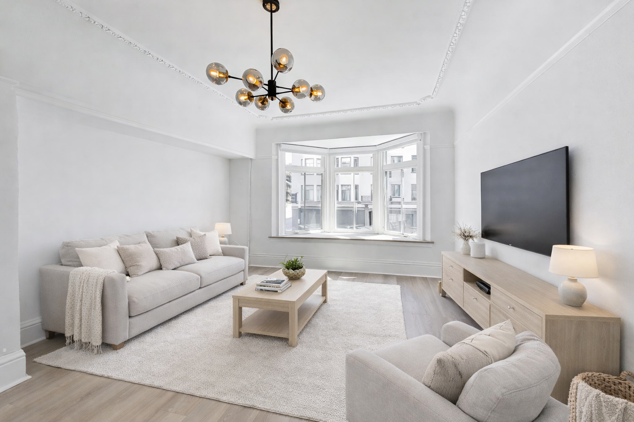 Welcome to 1215 Bay Street, Unit 4 a completely renovated 2 bedroom, 1 bathroom apartment nestled in one of San Francisco's most sought-after neighborhoods, the Marina. This beautifully updated apartment features brand new stainless steel appliances, a brand new in-unit washer/dryer, and an updated bathroom with a new vanity and medicine cabinet. The living room and one of the bedrooms showcase iconic San Francisco bay windows, filling the space with natural light and classic character. Additional upgrades include fresh paint throughout, new floors, modern updated light fixtures, and brand new window coverings truly move-in ready from day one. Garage parking is available for an additional fee. Don't miss your chance to call this stunning Marina apartment home schedule a tour before it's gone! **This apartment is rented unfurnished. Some listing photos have been virtually staged for inspiration purposes only.**