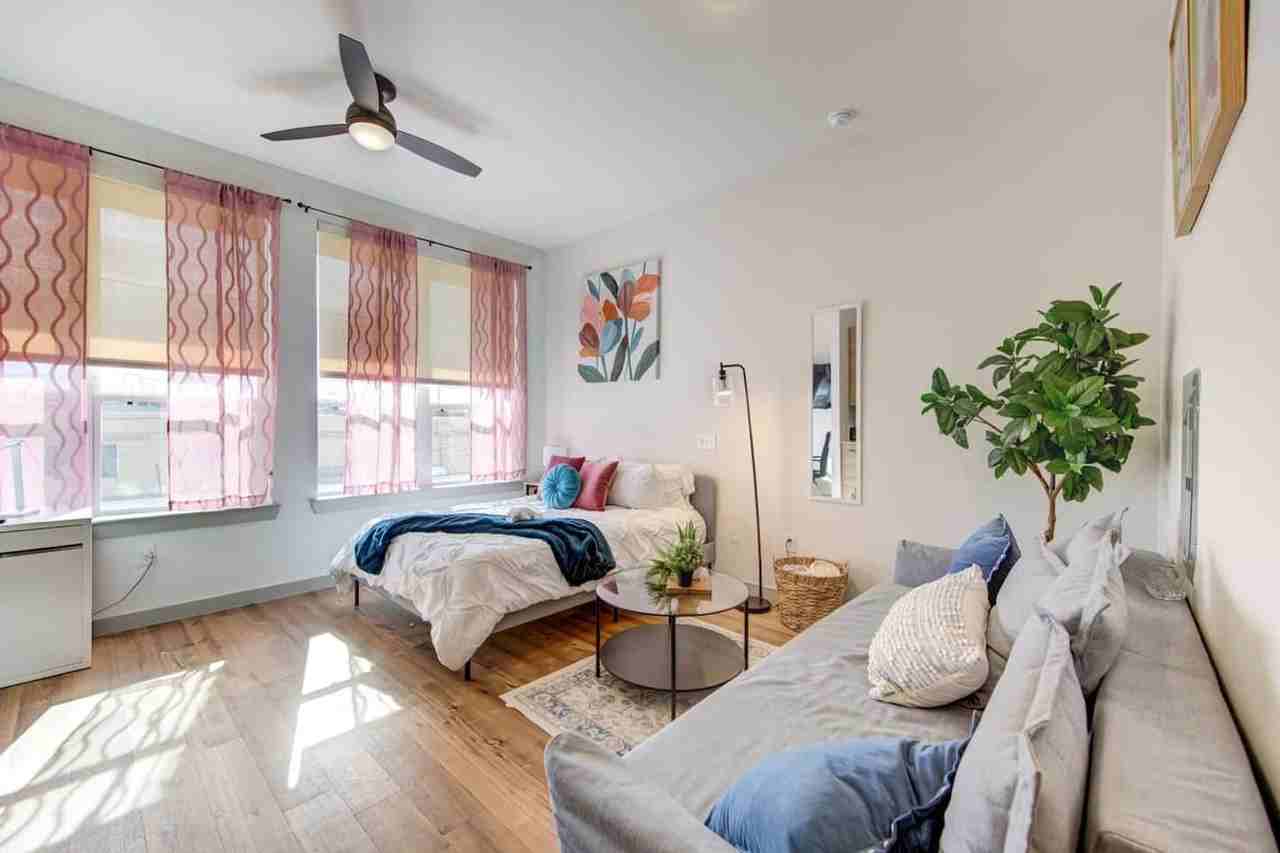The advertised rate of $3,220/month is the lowest available price, based on a 1 month(s) stay with a move-in date of April 23, 2026. Rates vary depending on the duration of stay, season, and other parameters. For exact pricing and additional pricing components, please visit our website and enter your desired move-in and move-out dates. The rate is applicable when billed upfront; it can be higher if billed in multiple payments. Feel at home in this cozy studio in the Washington Heights area of Houston, perfect for solo travelers or those visiting family. The apartment is close to downtown and the bars on Washington Avenue. This 390-square-foot studio features a fully equipped kitchen with a four-burner gas cooker, pots, pans, utensils, an air fryer, a blender, a Keurig coffee maker with complimentary coffee, creamer, and sweetener, and a toaster. The bathroom includes a standup shower, soft towels and washcloths, an iron, a steamer, a hair dryer, and a full-size washer and dryer. The apartment is within walking distance of many restaurants and bars on Washington Avenue, as well as a Walmart and HEB grocery store within a 1-mile radius. Popular destinations are a short drive away, including the Houston Galleria (15 minutes), NRG Stadium (18 minutes), Downtown Houston (10 minutes), and Memorial Park (5 minutes). This building is located close to a busy major road and a train track, so expect some noise. Also, the building is in close proximity to open fields and wooded areas, so you might see or encounter natural ecosystem habitat around including, but not limited to birds, bees, wasps, mosquitoes, spiders, ants, crickets, palmetto bugs, tree roaches, silver fished, and rolly pollies. Includes a sleek white desk with a reading lamp and charging station, a comfy chair, and a 50-inch smart TV.