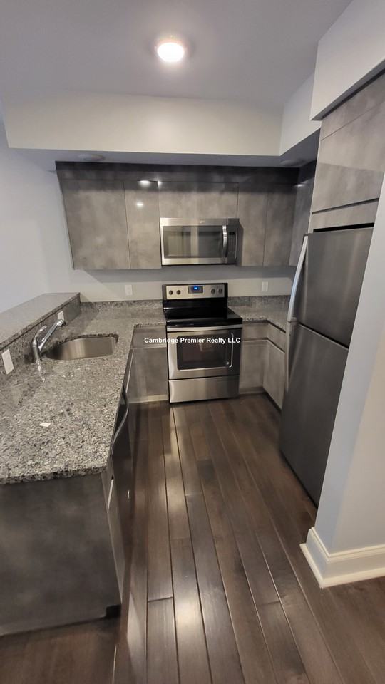 Renovated second floor one bedroom apartment in a medium sized luxury building in Watertown close to Watertown Square. This unit features open floor plan living room/kitchen, kitchen with s/s appliances, dishwasher, electric range, granite countertops and peninsula. High end vinyl flooring, in-unit laundry. Small pets are negotiable with a pet fees. Garage parking available for rent.