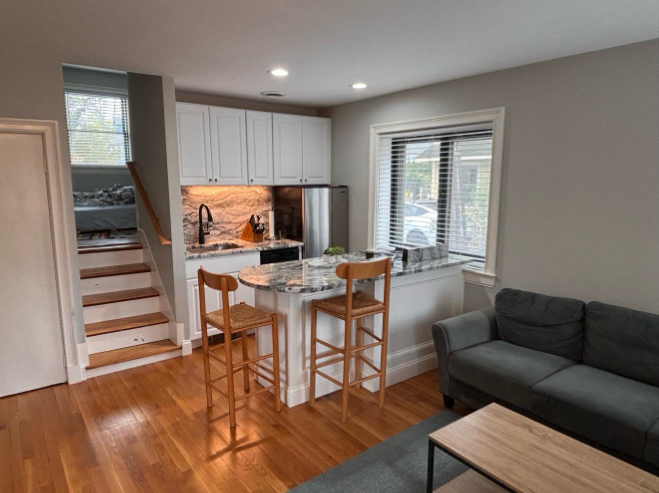 Sunny Compact 1BD/1BA In West Cambridge Combo living room/kitchen with oak hardwood floors and ample closet space throughout, creating a bright and functional living area. New modern kitchen with an island, dishwasher, disposal, microwave, refrigerator, and electric stove with oven, offering both style and convenience. Free shared laundry with full-sized washer and dryer available in a common area for easy access. Rent includes heat, hot and cold water. Tenant pays for metered electricity, billed semi-annually. Private entrance and front patio, perfect for added privacy and outdoor space. Great location: Facing views of the Charles River 8-minute walk to Harvard Square and Harvard Business School Easy access to public transportation on multiple major bus routes Located across from Mount Auburn Hospital On-street permit and metered parking available NO FEE!! Available 6/1 but could be ready for an earlier move in! Required deposits: First Security Non-