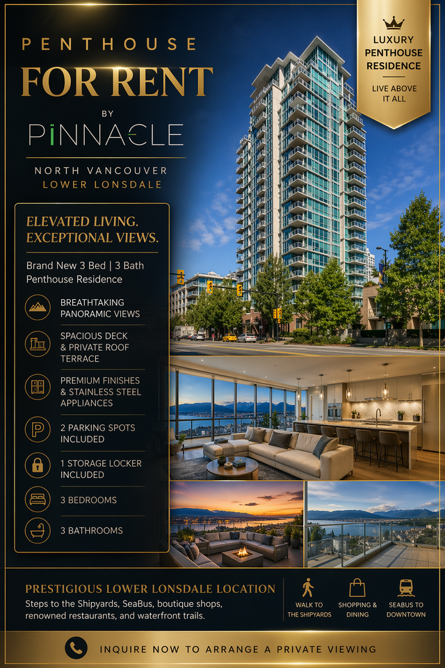 3-bedroom apartments at 168 East Esplanade #PH1 cost about 5% less than the average rent price for 3-bedroom apartments in Lower Lonsdale.