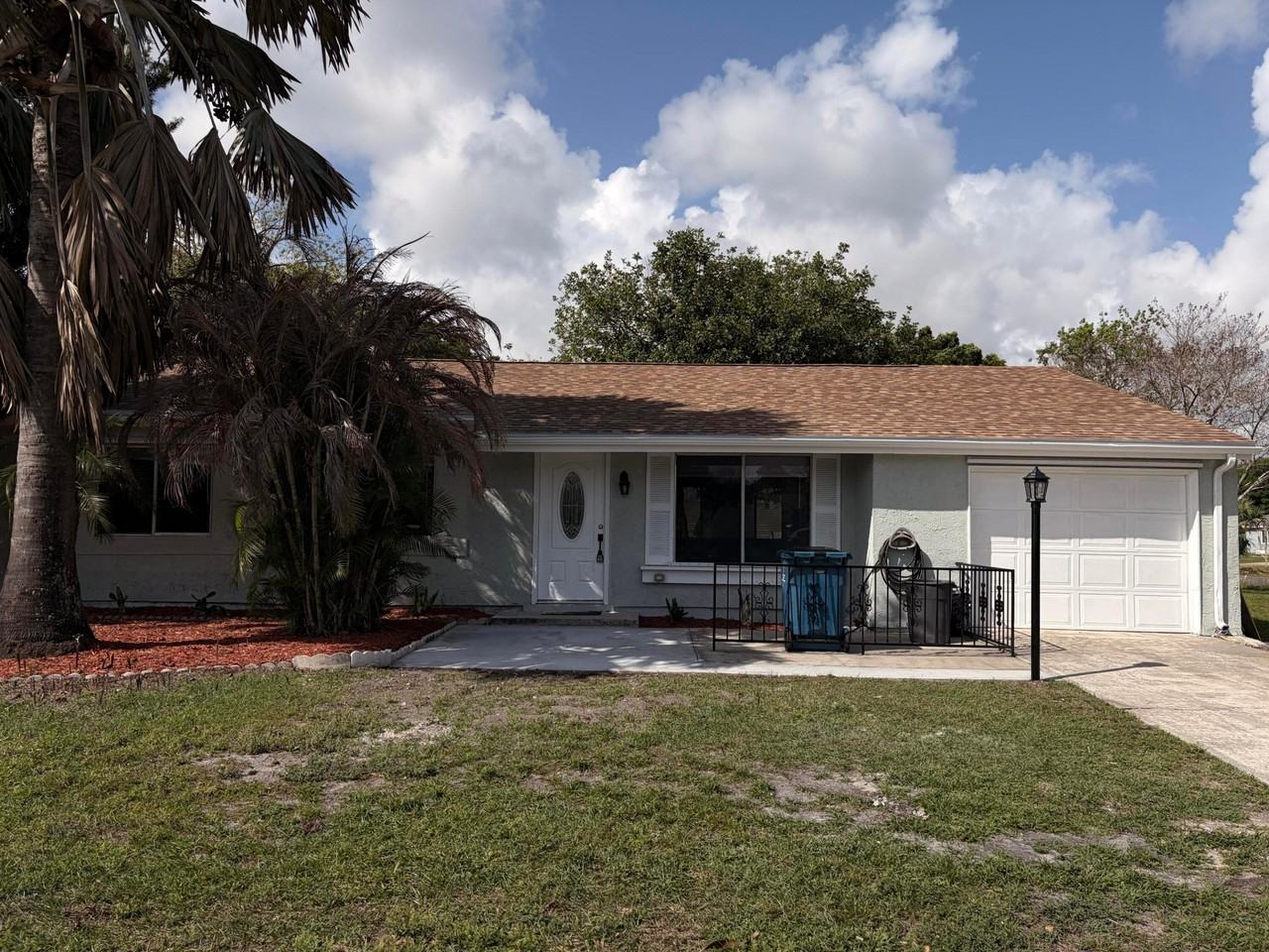 Charming 3-bedroom, 2-bathroom home offering 1,176 sqft on a desirable corner lot, available for rent. This well-maintained property features brand-new flooring, a new roof, and fresh interior paint. Enjoy the convenience of an included washer and dryer, a 1-car garage, and lawn care included in the rent. Ideally located near Palm Bay Road, with shopping, dining, and everyday essentials all within a 10-minute drive. Call today to schedule a showing and get more information!