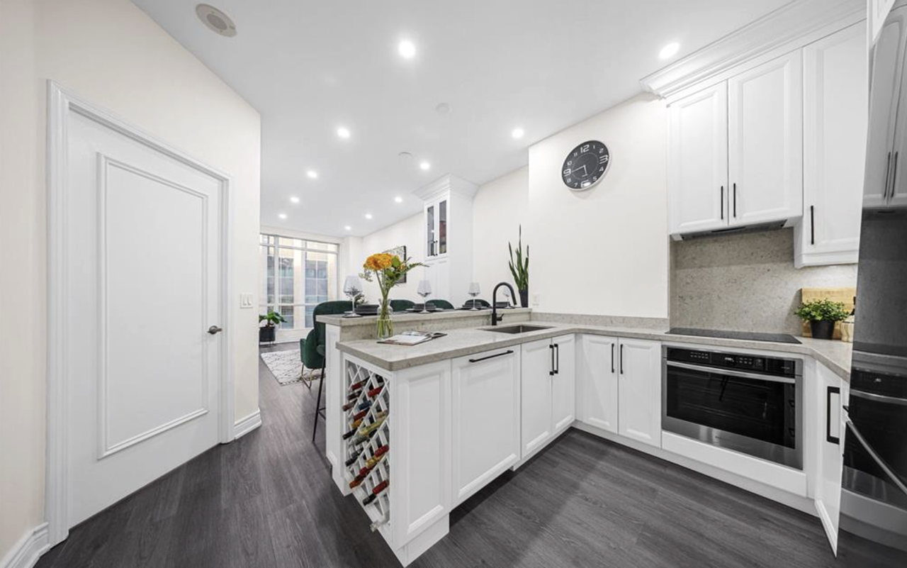 Professionally renovated 2 bed, 2 bath suite with several high end upgrades and abundant built-in storage. Open-concept living space with 10-foot high ceilings; Newly renovated bathrooms feature high-end quartz countertops, one with a rainfall shower and the other with a standalone bathtub. The kitchen boasts quartz countertops, a custom-built island with seating, custom shelves, and built-in appliances, including a panel-ready dishwasher. With four generously sized closets, storage is a breeze. Walk Score of 100, Transit Score of 100,and Bike Score of 93, with King Station and the PATH at your doorstep. Union Station is a 6-minute walk away, and St. Lawrence Market, Eaton Center, Toronto Metropolitan University, and Lake Ontario waterfront are all within a 10-minute stroll. Amenities include a lounge, indoor pool, gym, garden terrace with BBQs, visitor parking, and all-inclusive utilities. For more information and easy showings, please contact: Shannon Sauder Royal LePage Heaps Estrin Team