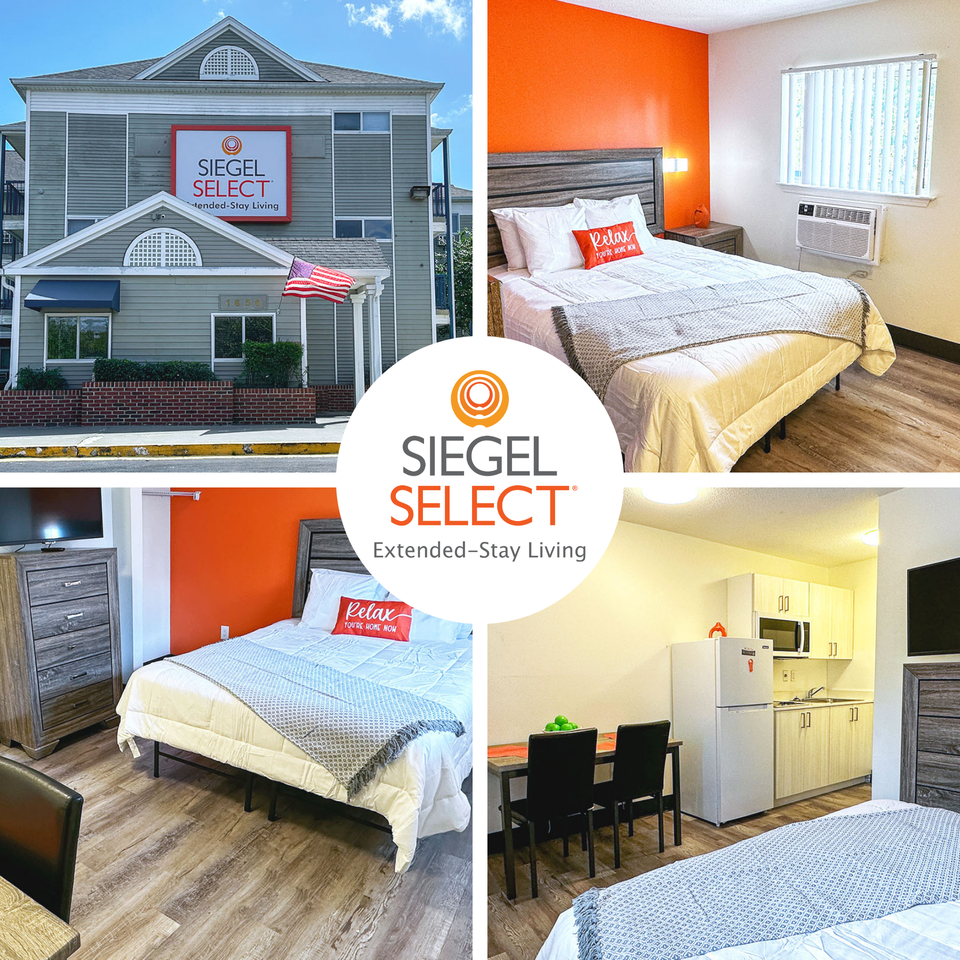 Siegel Select Orange Park offers weekly and monthly affordable extended stay suites in Orange Park, Florida. For more information, call 904-850-8742. Conveniently located on Wells Road near major highways and retail centers, the property features fully furnished studio suites with in-room kitchenettes, utilities included, premium cable, and on-site laundry facilities, providing comfortable accommodations for both short-term and long-term stays. With flexible weekly and monthly options, this location is ideal for guests relocating, working temporary assignments, or seeking budget-friendly extended stay housing in the Jacksonville metro area. Guests enjoy close proximity to Orange Park Mall, NAS Jacksonville, local healthcare facilities, and major employers throughout Clay and Duval counties. The property also offers convenient access to downtown Jacksonville, the St. Johns River, and nearby beaches. Siegel Select Orange Park combines value, accessibility, and comfort for extended stay living in Northeast Florida.