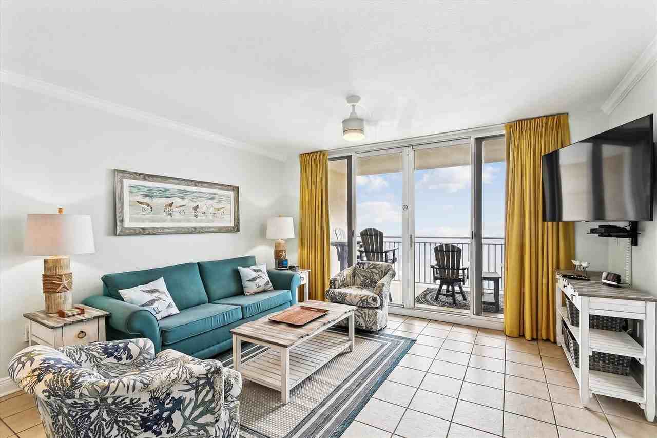 The advertised rate of $3,925/month is the lowest available price, based on a 30 day(s) stay with a move-in date of October 23, 2026. Rates vary depending on the duration of stay, season, and other parameters. For exact pricing and additional pricing components, please visit our website and enter your desired move-in and move-out dates. The rate is applicable when billed upfront; it can be higher if billed in multiple payments. Feel at home in this spacious 1299 sq ft, 2-bedroom, 2-bath condo, Unit 1830, located on the 18th floor of Emerald Beach Resort. This apartment comfortably accommodates 6 adults and 2 kids, offering extensive views of the spectacular turquoise waters of the Gulf of Mexico, brilliant white sandy beaches, and sand bars. Decorated in soft colors to enhance the beautiful outdoors, this apartment features a main living area with ceiling-to-floor glass doors opening to a private balcony, perfect for enjoying sunsets or watching pelicans. The living area includes a large queen-size sleeper sofa, two comfortable swivel-glider chairs, and an adjustable large flat-screen TV with cable and streaming channels. The recently upgraded kitchen boasts Stainless-Steel appliances, a new backsplash, sink, and garbage disposal. It is fully equipped with a stove/oven (convection and air-fryer options), two coffee makers, a toaster oven, microwave, dishwasher, and a refrigerator/freezer. The cabinets are fully stocked with essentials like a crockpot, toaster, and Forman electric grill, and there's a pantry for your dry goods. The dining area offers bar height seating for four and a large dining table with seating for six. A full-size washer and dryer are conveniently located in the laundry room off the kitchen. The master bedroom features a restful king-size bed, a cozy sitting area, a chest of drawers, a large adjustable flat-screen TV, and personal access to the beachside balcony. Its en-suite bathroom has a double vanity, soaker tub, and a walk-in shower. The second bedroom provides a bird's eye view of the city and the bay, with a comfortable queen-size bed, a closet, and another large TV. The guest bathroom has a standard tub/shower. For younger guests, twin-size bunks with a ladder and full side railing are located in the entry hallway. The balcony is furnished with a high-top resin bar table and chairs for maximum viewing, and comfy Adirondack chairs with a side-table for relaxation. The apartment is equipped with three flat-screen smart TVs (60" in the living room, 45" in the bedrooms) with internet access for streaming services, new Blue Ray DVD players in all rooms, towels and linens (guests must provide their own beach towels), a starter set of shampoo, face/body soap, paper towels, and toilet paper, and an ironing board with an iron. Emerald Beach Resort offers two swimming pools, one beachside and another on the north side with a kid's splash pool, and two hot tubs, also located beachside and on the north side. Grills are available for use by the north side pool. Guests can utilize the fitness center on the 2nd floor from 5 a.m. to 10 p.m. On-site conveniences include ATMs next to Starbucks, a Tiki bar at the beachside pool-deck, a Sky Bar in the Sky Bridge with daily social events, a Starbucks, and a Beach Store on the first floor for basic essentials. Parking is available on-site for up to two vehicles, with a $25 registration fee charged by Emerald Beach Resort. Guests must complete the registration process to receiv..