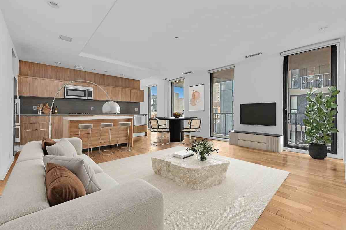 Rent Stabilized Bright 1 bedroom with Private Balcony!Nestled in Williamsburgs coveted waterfront district, 50 North 1st Street delivers on both convenience and lifestyle!Apartment Features:Bright sixth floor unitKing size bedroom with stunning Manhattan Skyline views Modern Kitchen with Caesar Stone Counter-topsStainless Steel Appliances including Dishwasher and MicrowaveAmple closet spaceRecessed LightingFloor to ceiling windows providing an abundance of natural light Central A/C Washer/dryerOak hardwood floors throughoutJuliet balcony with stellar Manhattan Skyline and Williamsburg Bridge ViewsBuilding Features:Communal Courtyard2 Roof DecksGymBike StorageElevatorParking GarageVirtual doormanRefuse chute on each floorPackage RoomLocation:Domino Park, the East River waterfront, and scenic promenadesCulinary and cultural scene restaurants, cafs, galleries, and nightlifeEasy access to multiple subway lines: L at Bedford & 7th, G at Metropolitan, J/M/Z at Marcy AvenueFerry stops nearby for direct access to ManhattanFirst Months Rent and Security Deposit equal to One Months Rent are due at signing in addition to a $20 application fee for each applicant.
