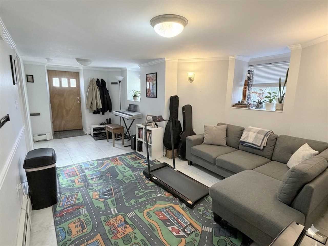 Fantastic deal for a 4 BR 2 Bath apartment very close to Magoun Square and walkable to Davis Square. 2 BRs are upstairs and 2 downstairs with a full bathroom on each floor. One of the upstairs bedrooms is as big as 2 normal sized bedroom with a gigantic closet- 2nd bedroom on upper floor is big with big closet, and there is a super nice bathroom on this floor. Kitchen is modern with DW and is open concept with the living room. There is a second living room in the basement + two additional bedrooms and a full bath. The basement bedrooms are good sized with good light but are smaller than the rooms upstairs. Very nice patio with entrance to the basement area and 3 off street parking spots are included! Great value and tons of common space! Laundry is on the second floor landing and is a very nice laundry room with two washers and two driers for the building, and it is free!
