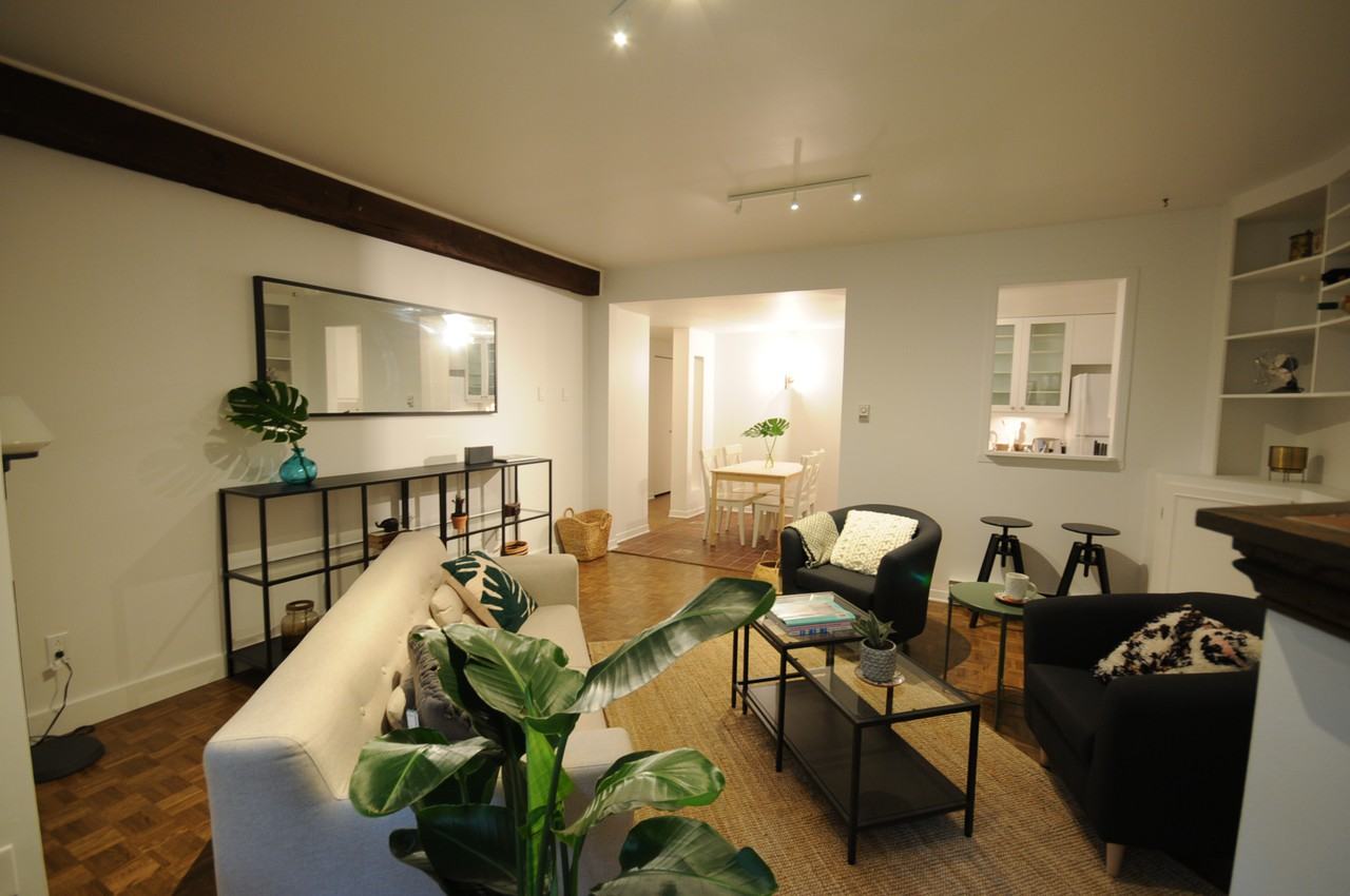 Fantastic location less than 10 mins from McGill on foot. (Provigo, pharmacy, bus lines, metro station, Place des Arts all 3 minutes away!) Fully furnished apartment with 4 bedrooms (each with bed, desk, desk lamp, chair, shelves and wardrobe) 1 bathroom with door separating toilet and bath from sink area Oven, fridge, washer, dryer, microwave and dishwasher included! Private outdoor balcony. Fully stocked kitchen with pots, pans, cooking utensils and cutlery and a separate dining room. Large living room perfect for hosting all your friends once we kick this Covid thing! The nuts and bolts: Lease from May 1 2021 until April 30 2022 Non-smoking Monthly rent is 850$ per room Utilities are not included (there's only one: Hydro-Quebec roughly 35$/month/person) Messege me to arrange a virtual or in-person showing (gotta adapt for Covid!) Stay safe everyone!