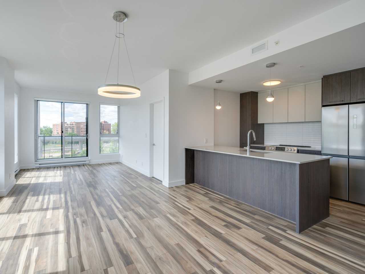 A brand new bright and spacious corner condo on the 5th floor with view of Lac St. Louis in Pointe Claire is available for rent. Condo is 1102 sq ft with 2 bedrooms and 2 bathrooms and a private balcony. The unit with a luxurious interior finish has a large master bedroom with walk in closet and an attached bathroom. The condo unit has 9 foot ceilings, energy efficient windows, sound proof walls, high quality blinds and includes five high-quality appliances (3 kitchen appliances and washer/ dryer). The unit comes with an indoor parking spot, storage locker, gym and a rooftop terrace with a heated pool and BBQ units. Courtyard with green space and a second outdoor pool accessible to residents is also available. The unit is centrally located at walking distance to Valois train station and a short distance to the airport, highway 20, grocery stores, pharmacies, shops and newly coming REM station. Call Jahan 514-994-7653 No dogs, smoking or Airbnb allowed.