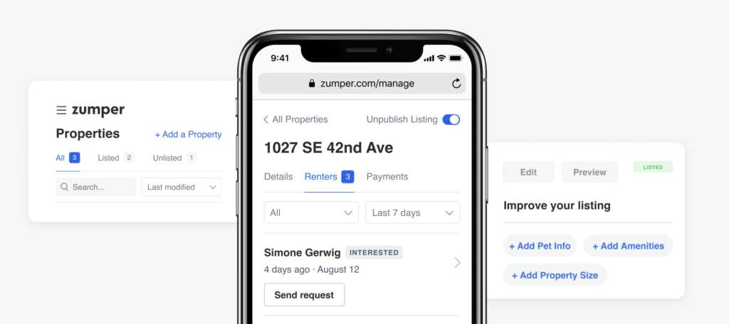 Check out our new website today at zumper.com/manage and let us know how we can continue to improve the rental experience for you.