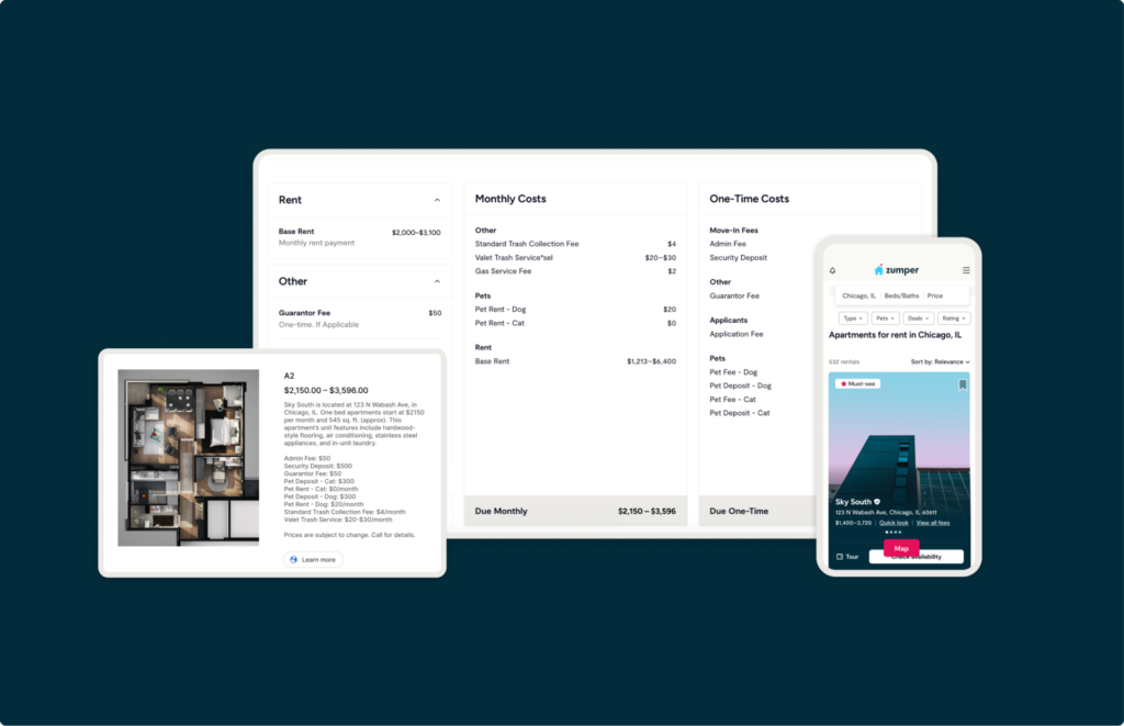 Through this partnership, mandatory fee data from Engrain’s SightMap syndicates to display ‘Total Monthly Leasing Price’ on Zumper listings and can also power the Zumper cost calculator, added to Zumper listings in 2025. This integration is the next step in helping ensure prospective renters have a clear understanding of the total cost of living at a community, while reducing the manual work required for property teams to keep fees up to date across channels.